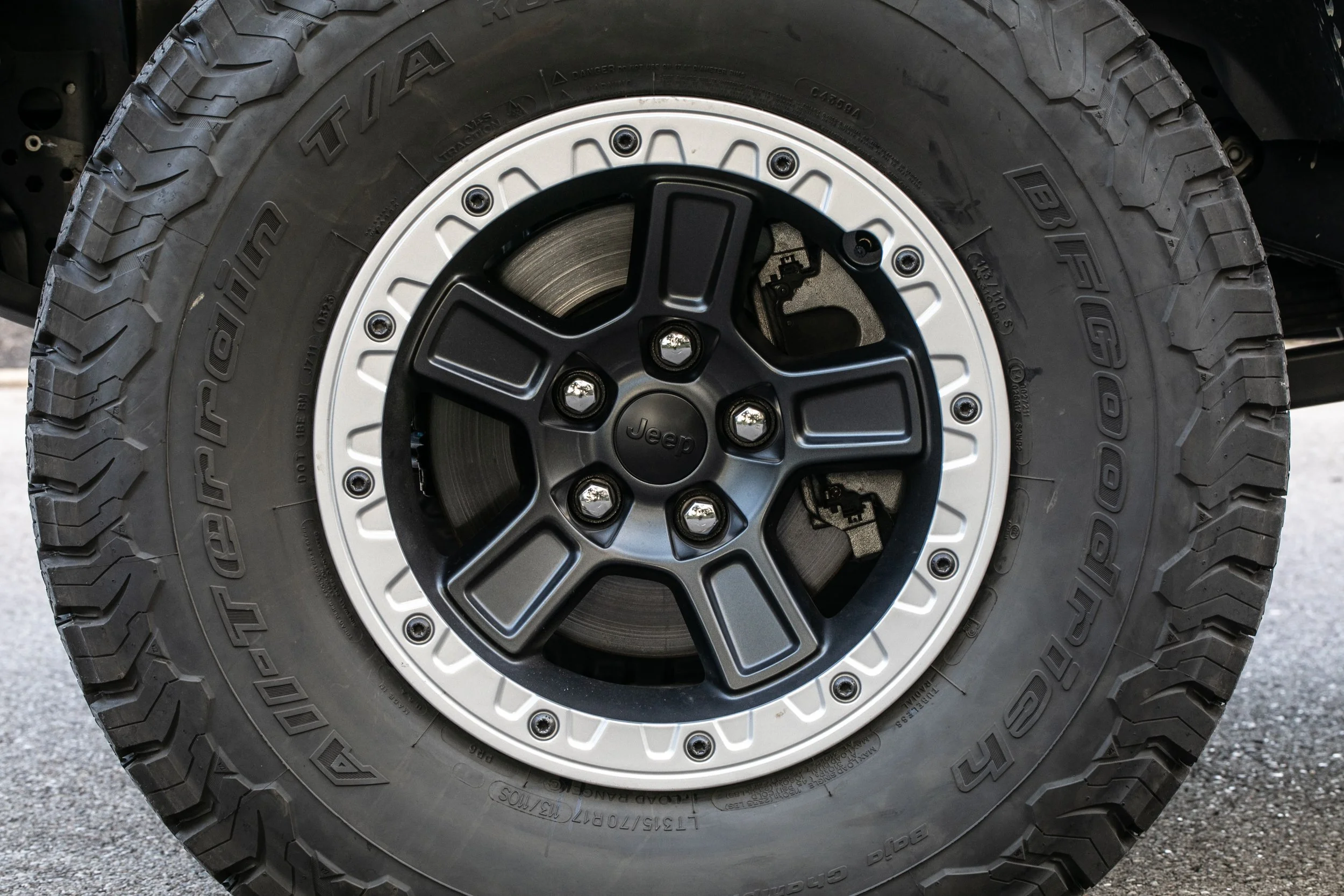 Mopar unique 17-inch Beadlock Wheel painted Lights Out Black. Tech Silver beauty ring, Black lug nuts and center cap paint. DOT approved wheel with true beadlock feature. The outer bead of the tire can be mounted in a DOT-approved inner location or in the outer location as a true bead lock with the Functional Lock Ring Kit. It also features a protected valve stem design and meets all FCA US LLC standards for corrosion and load. With matching center cap.